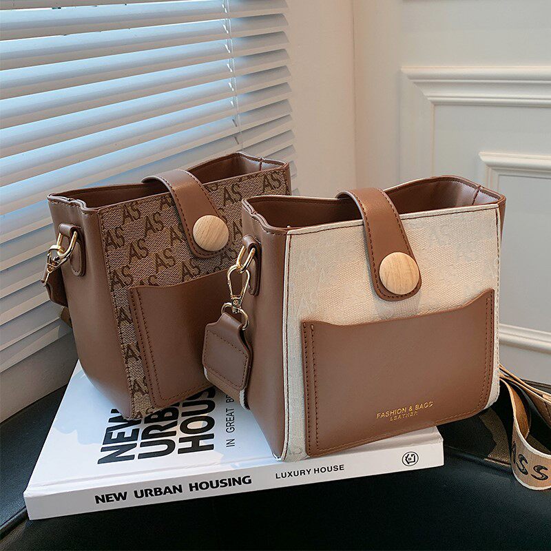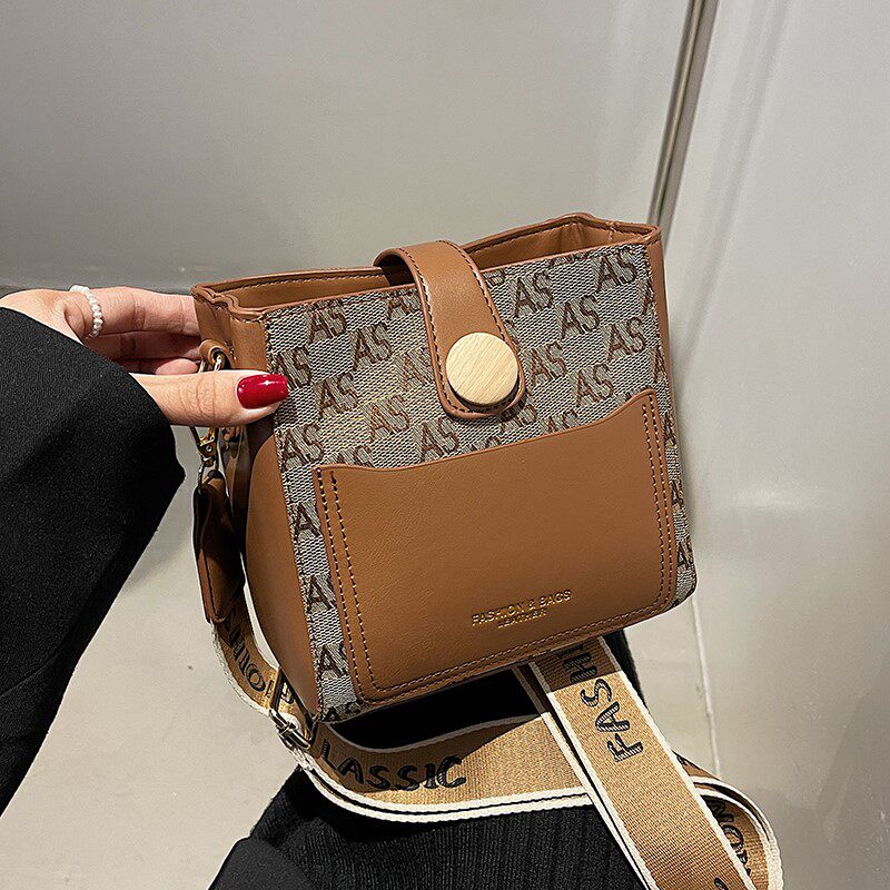 French small-to-be-sourced Crowdsourcing Bag Women's Autumn Winter 23 New Tide Fashion Broadband Skew Satchel Pet Advanced Sensation Bucket Bag-Taobao