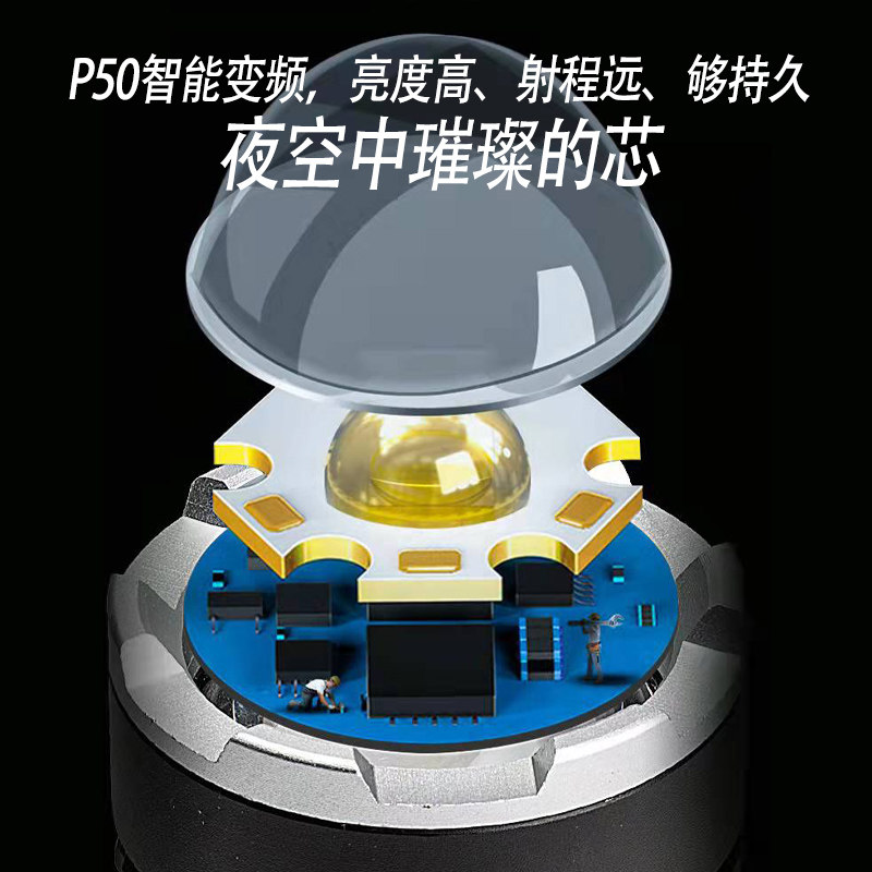 26650 strong light flashlight outdoor explosion-proof P50 long-range LED charging multi-functional camping lamp camping aluminum alloy