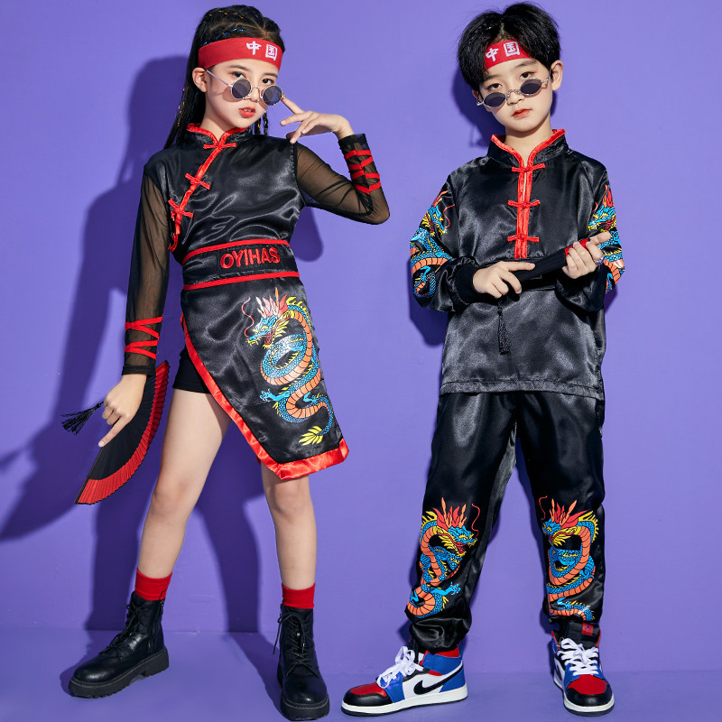 Children's costumes street dance hip-hop suit boys Chinese style Hanfu tide clothing girls Tang suit New Year's party clothing