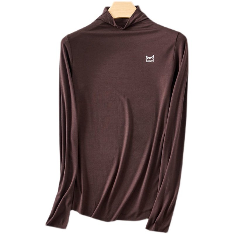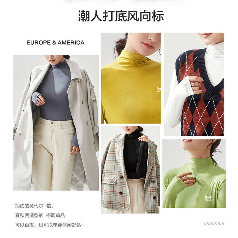 Cat people spring autumn new Modale semi-high collar bottom shirt woman loose big code for a slim fit long sleeve t-shirt-Taobao