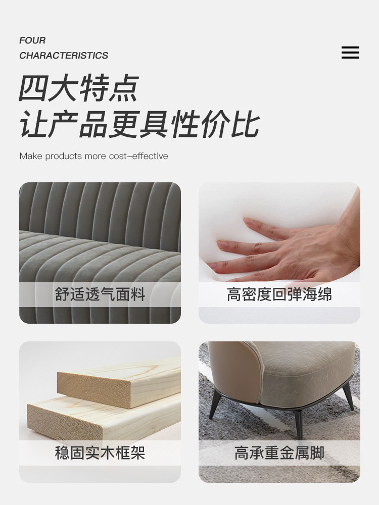 Nordic light luxury fabric sofa sample house display center rest area hotel lobby business reception reception negotiation sofa combination