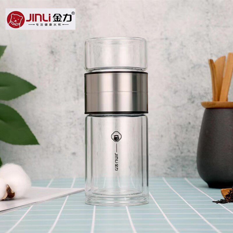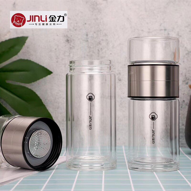 Jinli double-layer glass tea water separation men's office tea cup thickened thermal insulation car business cup - Taobao