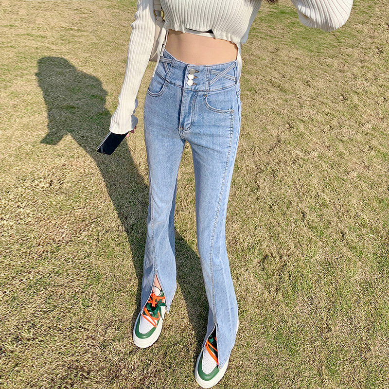 Mrslady forklift horn jeans female spring dress 2022 high waist slim tight tight tow and slim horn trousers small
