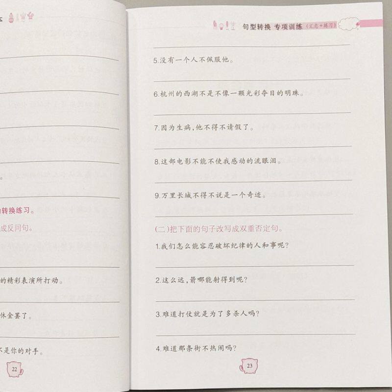 Sentence pattern conversion Modification of bad sentences Basics to improve 4 sentence pattern conversions Correction of bad sentences (2 books, page 108) Sentence training basics Improvement (2 books, 92 pages) summary exercises for sentence pattern conversion