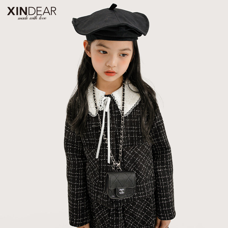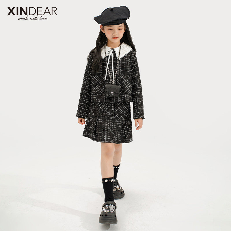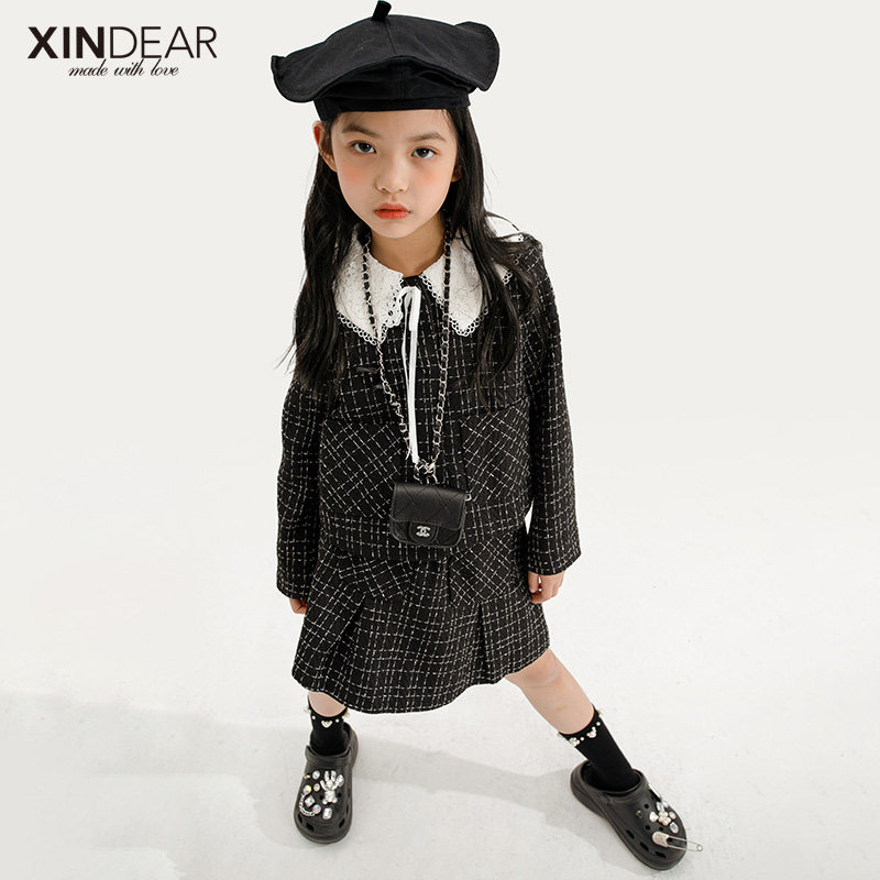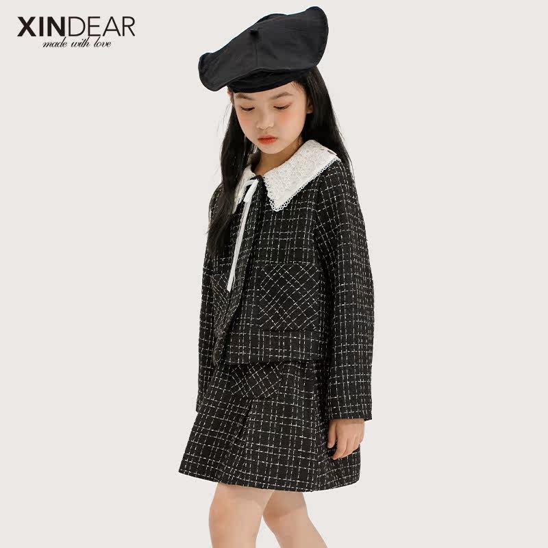 Girl's spring expected plaid flower Suit girl Spring autumn dress Two sets CUHK Scout jacket half-body dress mix