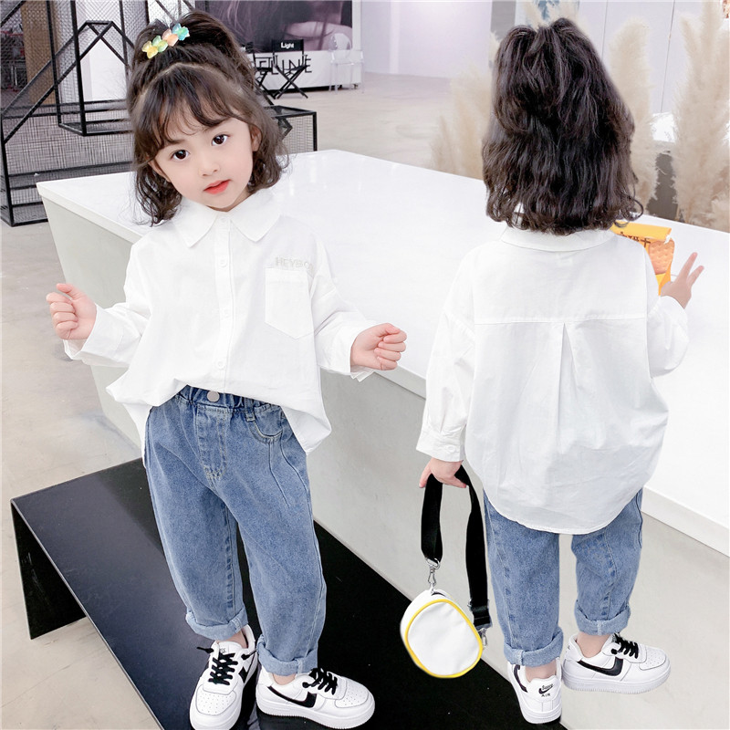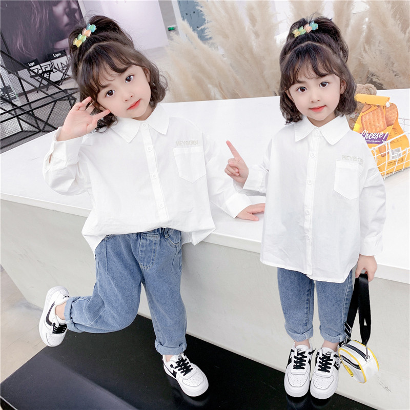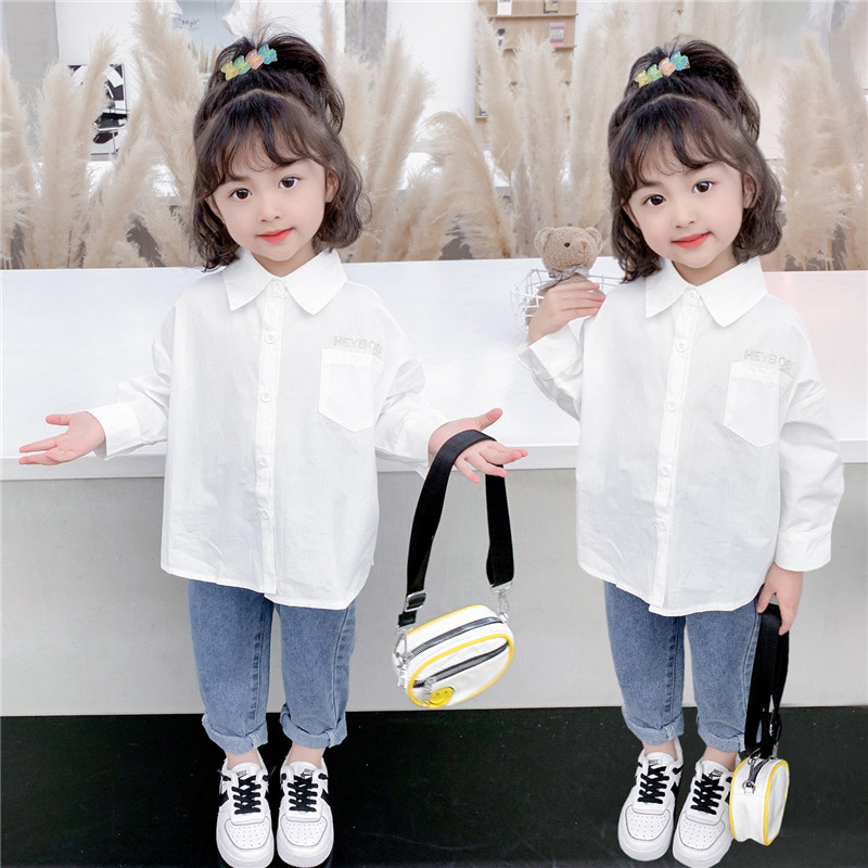 Girl shirt white 2022 new spring dress lady Korean version blouse women's baby pure cotton long sleeve shirt spring autumn