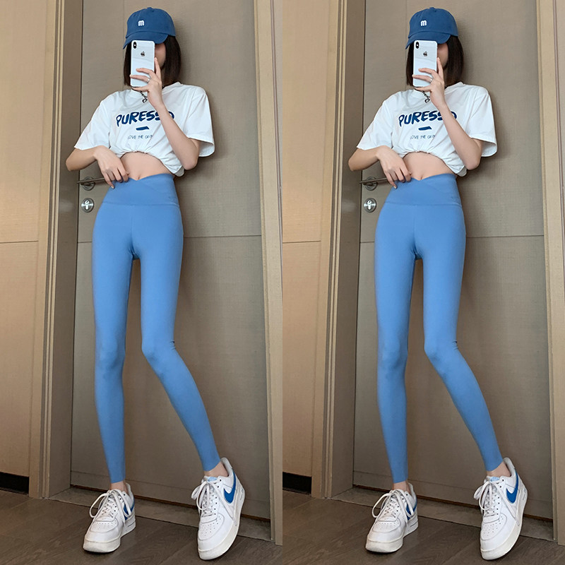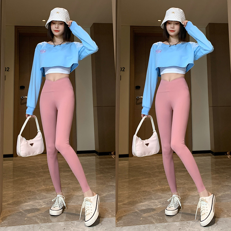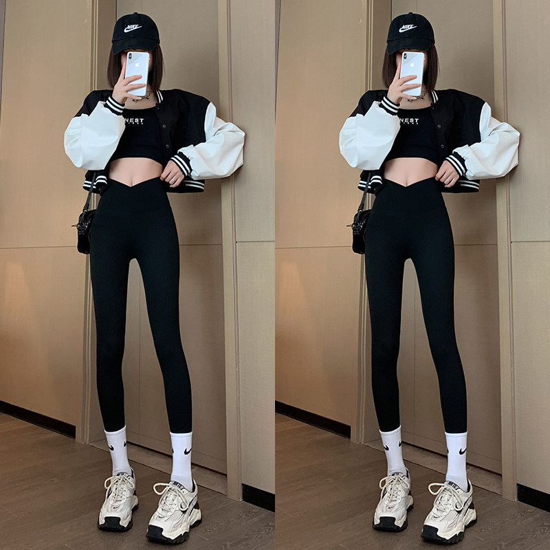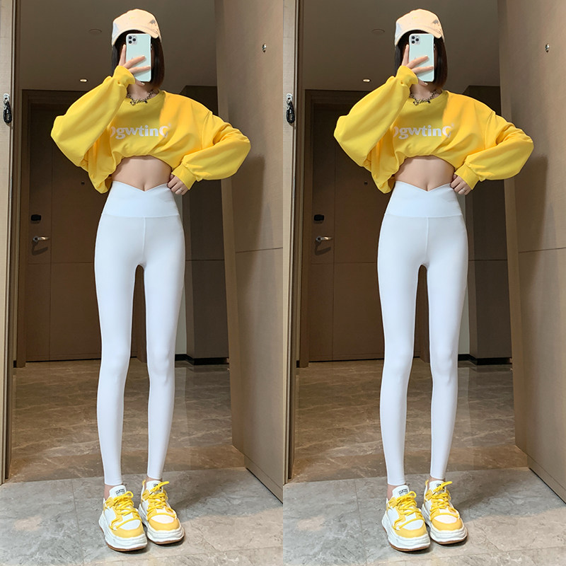Cross Waist Shark Skin inside lap pants woman outside wearing high waist to collect glutes and hip large size for fat mm200 catty yoga Barbie pants