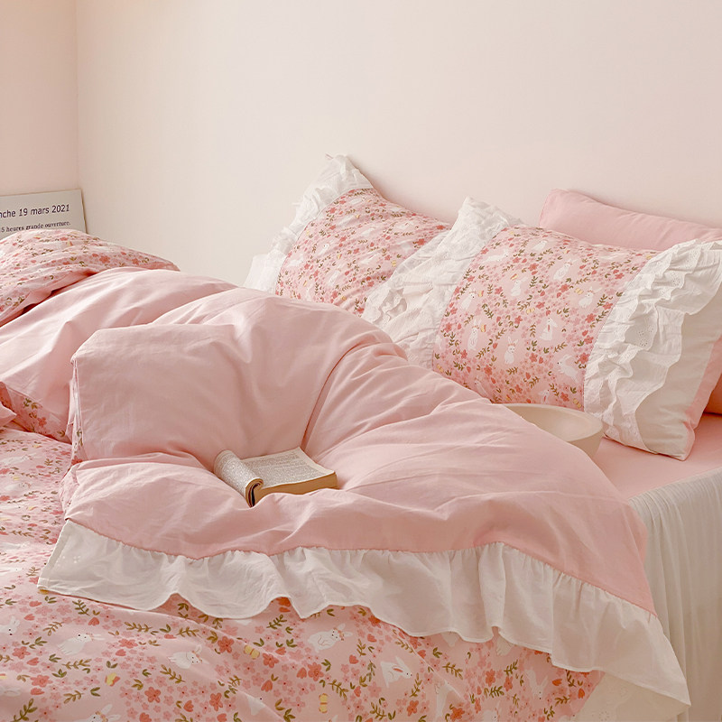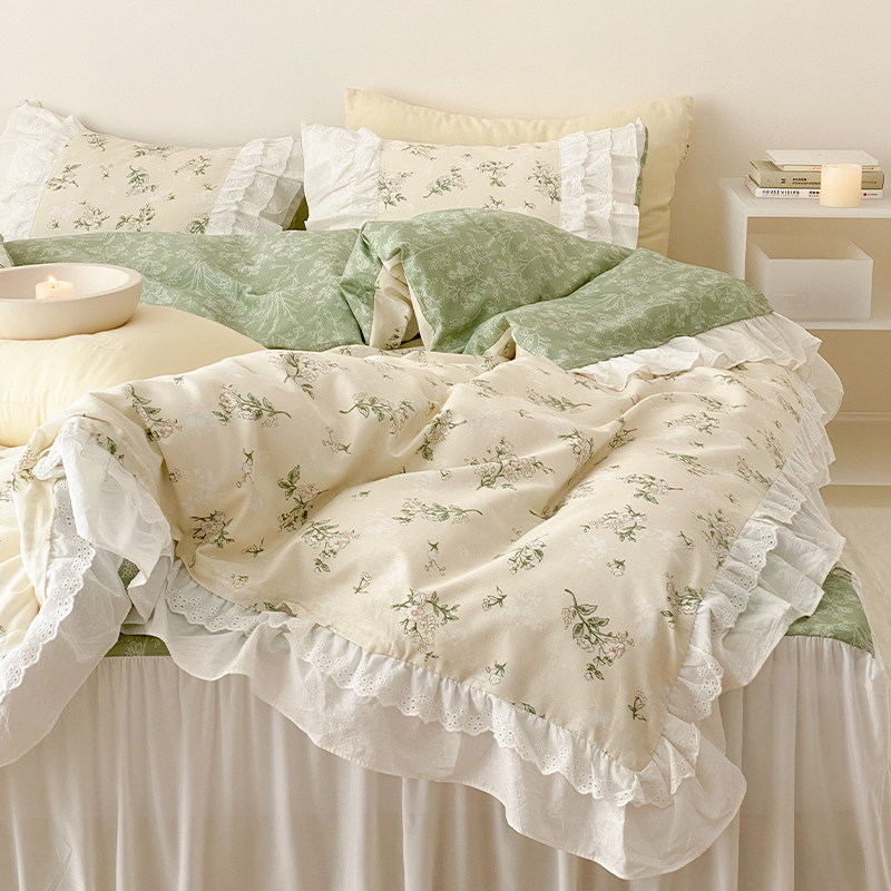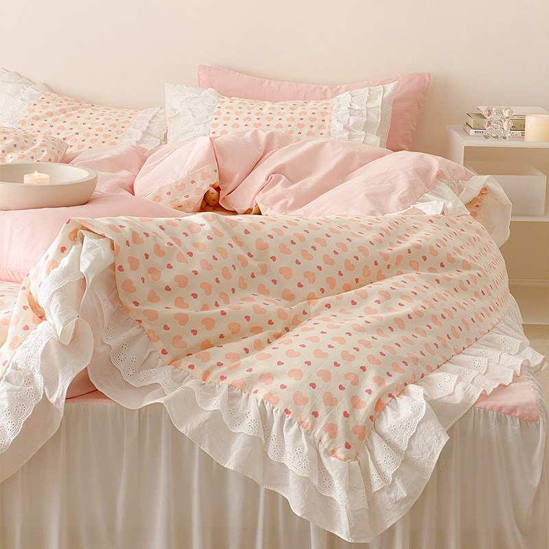 Temperature cream small piece cotton four piece princess wind 1 5m1 8 beds single Korean girl heart beds
