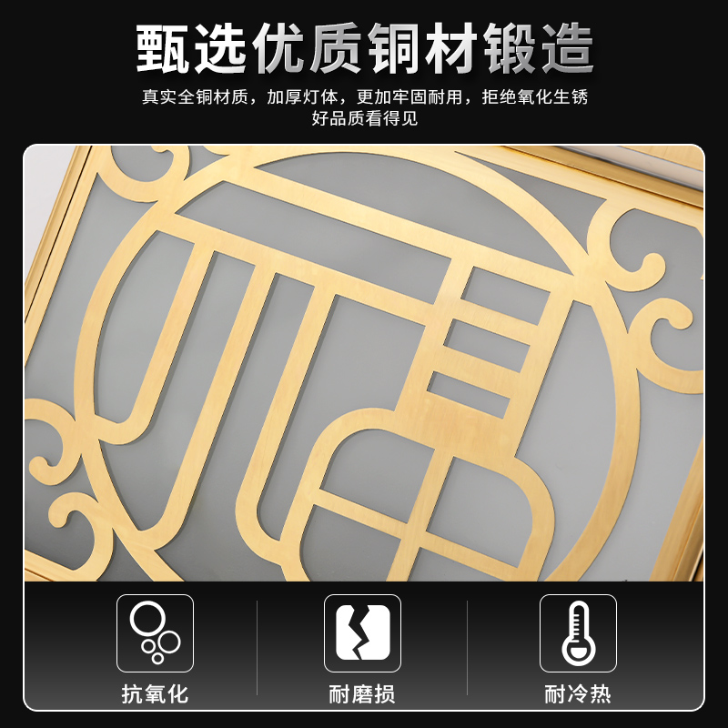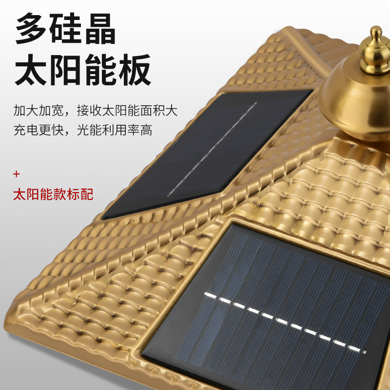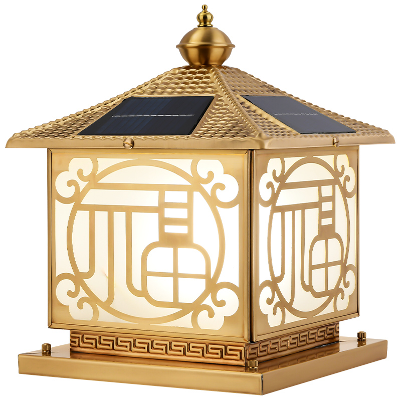 Total Copper Solar Wall Villa Fu Character Column Head Lamp Outdoor Waterproof Square Yard Lamp Waie Gate Pillar Lights-Taobao