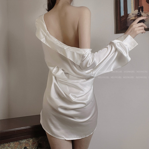 Spring and autumn sexy shirt pajamas women's 2022 new micro-permeable chiffon white mood ice silk cotton autumn nightdress