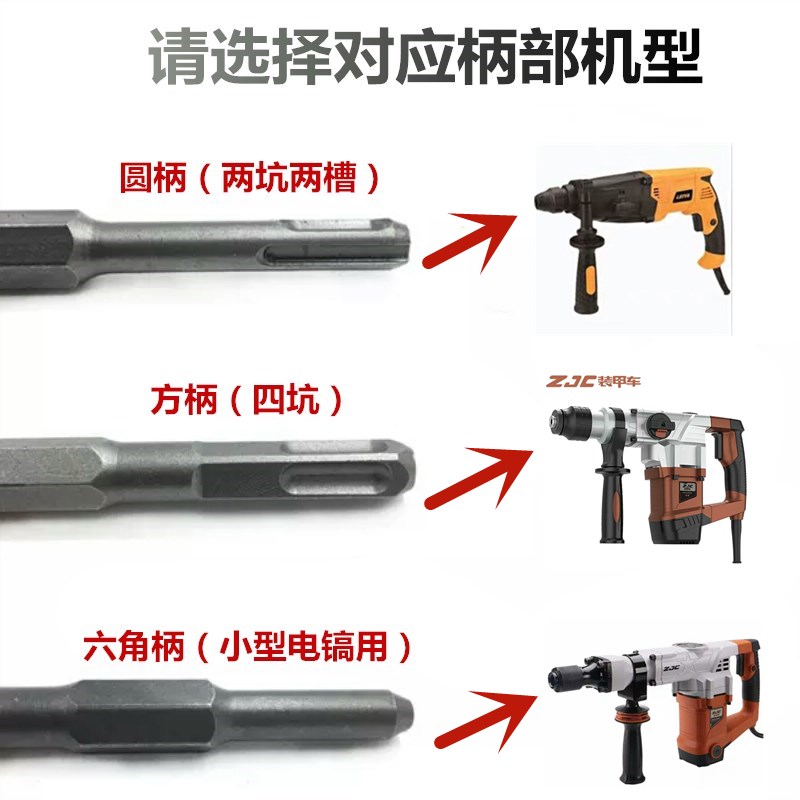 Electric pick electric hammer Hammer Drill Chisel Impact Drill Head Concrete Square Handle Four Pit Two Pits Two Grooves Flat Chipping Open Trough Over Wall Electric Pick Head