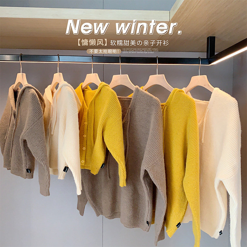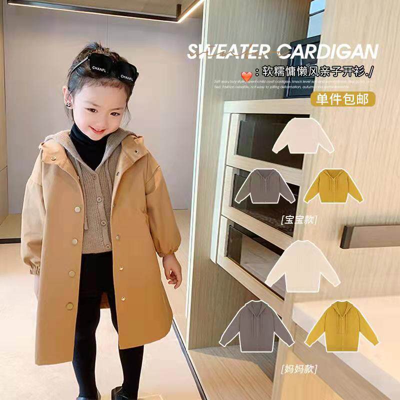 AmybabyChundress 2022 new girl's foreign pie knit cardio-red parent-child sweaters cardio-hoodie jacket children
