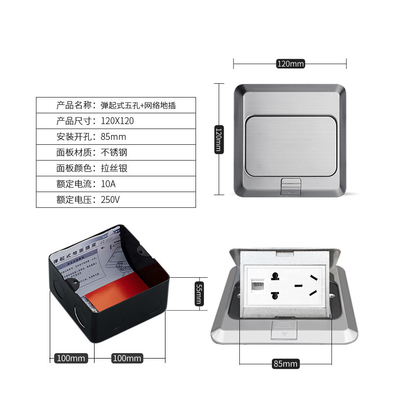 Stainless steel silver gray bounce ground insert British 13A Hong Kong style Hong Kong network socket waterproof floor socket home