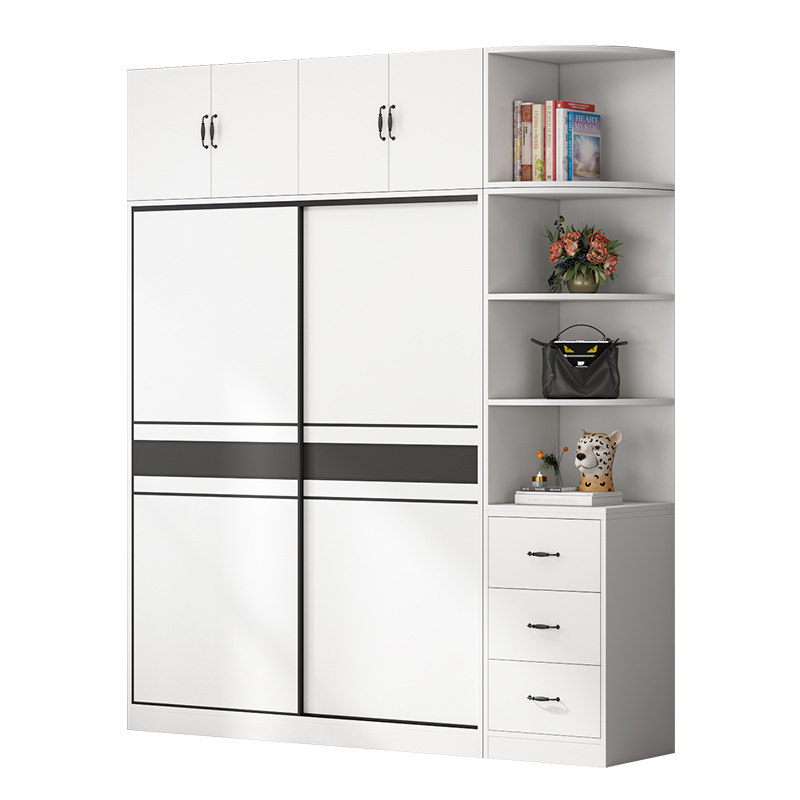 All solid wood wardrobe home bedroom children's storage cabinet small apartment simple modern log sliding door large wardrobe
