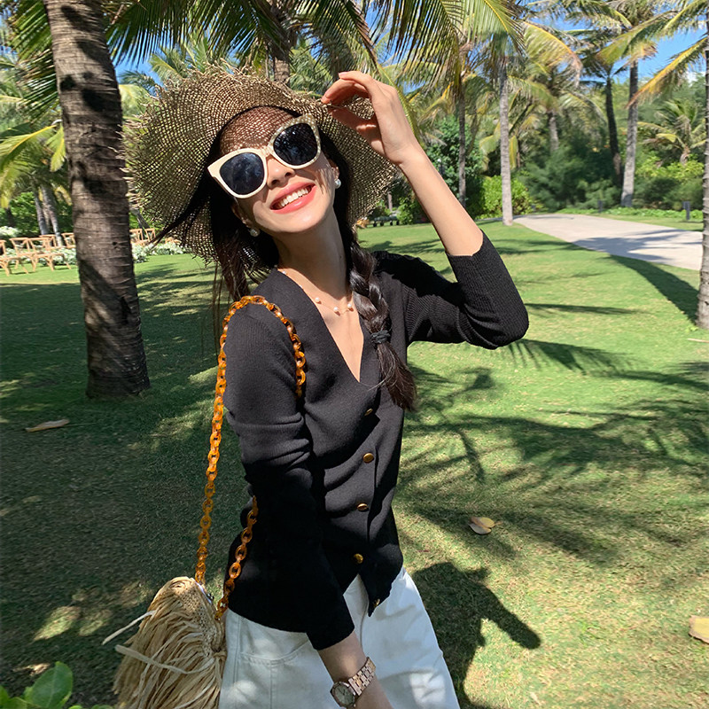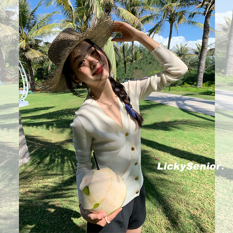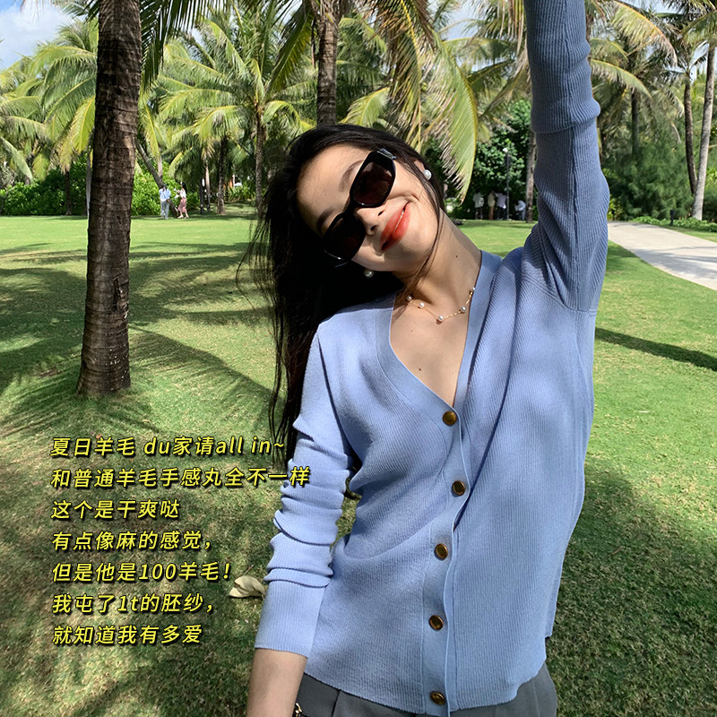 LICKYSENIOR Spot seconds for summer wool Dingdyeing V collar knit cardiovert female display slim long sleeve blouse