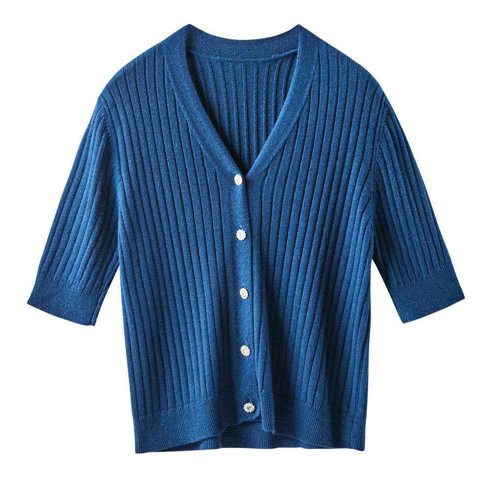 Yan Domain Temperament Slim Knit Cardigan Woman Summer Dress 2022 New Reduced Age 100 Hitch Slim Fit Slim Half Sleeves Short