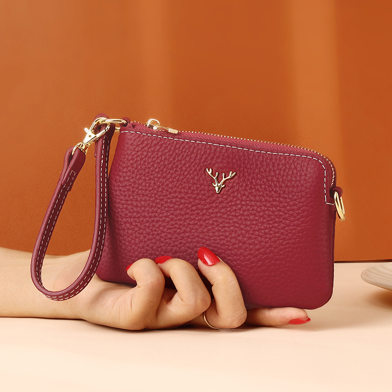 2022 new leather coin purse first layer cowhide ladies small wallet Western style coin key card bag handbag bag
