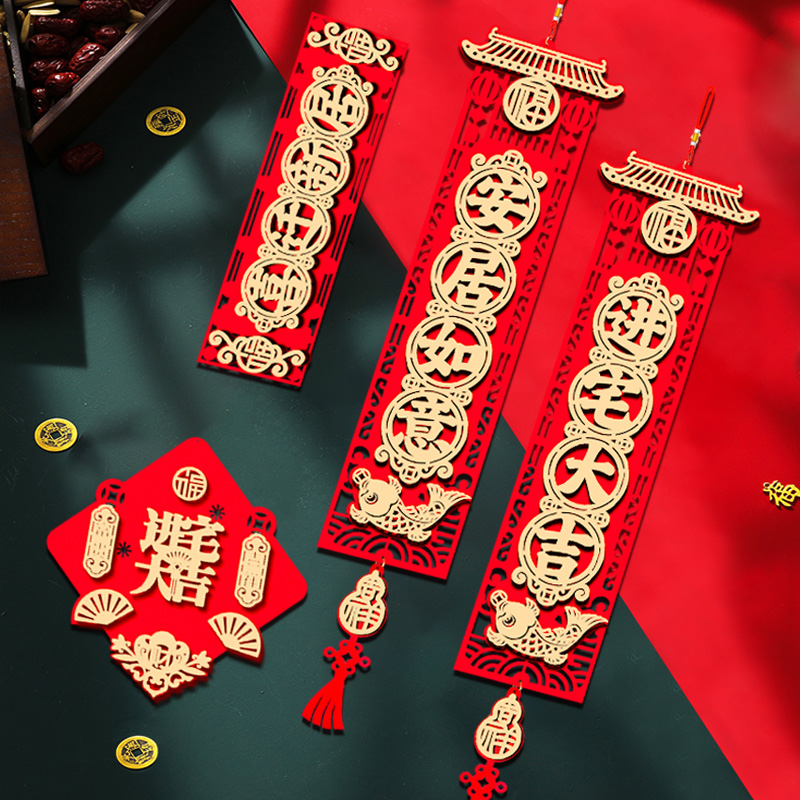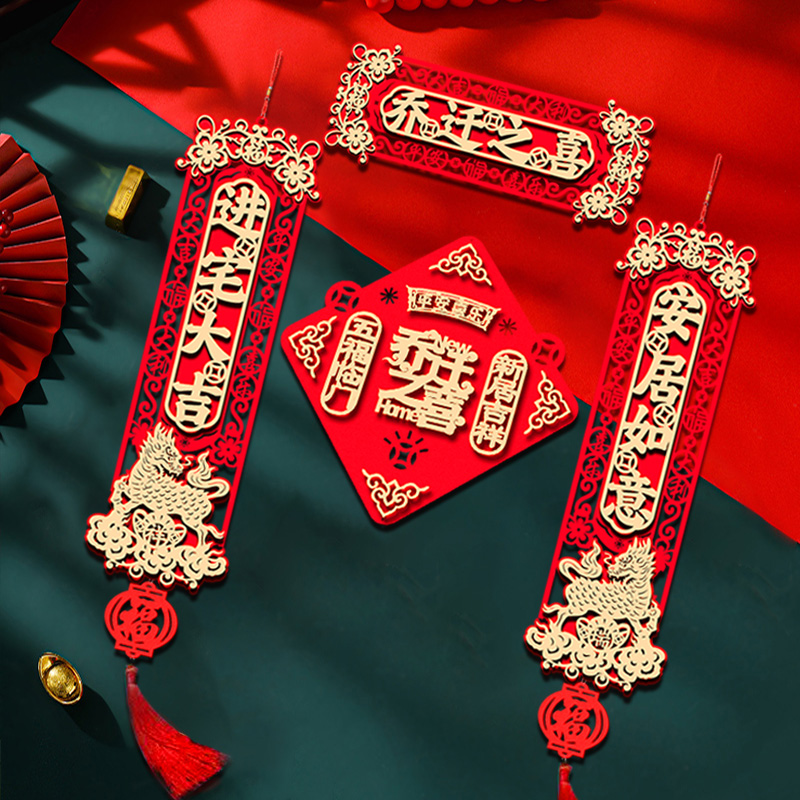 Fu character Qiao relocating to the new residence of the moving new residence, decoration of the new house gate placement door placement and hanging decoration