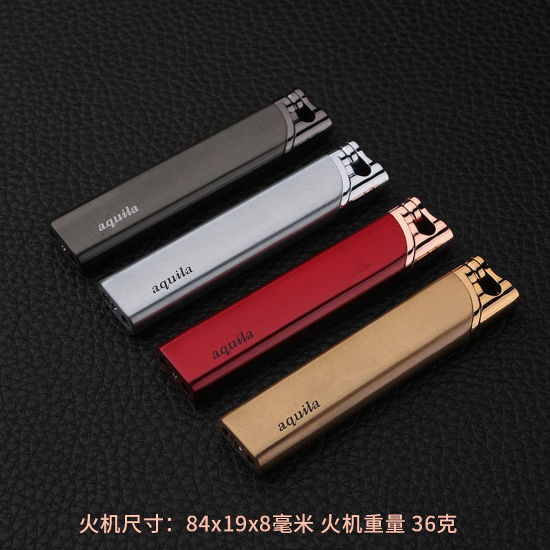 New Full Metal Ultra-thin Strip Creative Personality Inflatable Windproof Lighter Outdoor Windproof Point Tobacco Red Flame Man