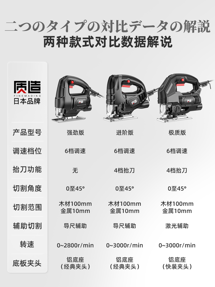 Strong version (6 gear throttle) 11 Saw Blade Progressive version (6 gear throttle 4 stalls with knife) 21 incoming order version (6 gear throttle 4 stalls with knife) 11 1000W extreme mass version (