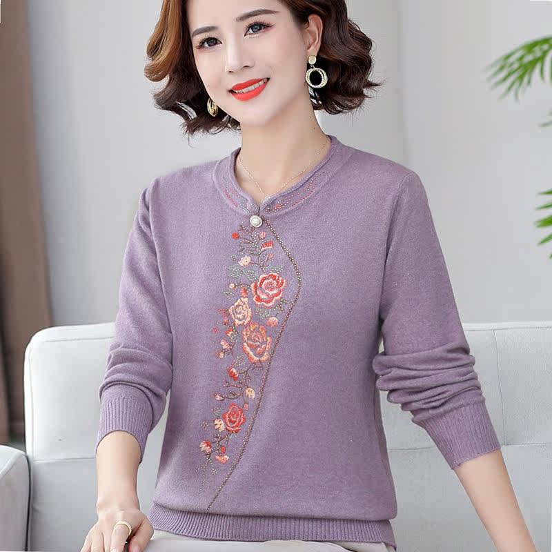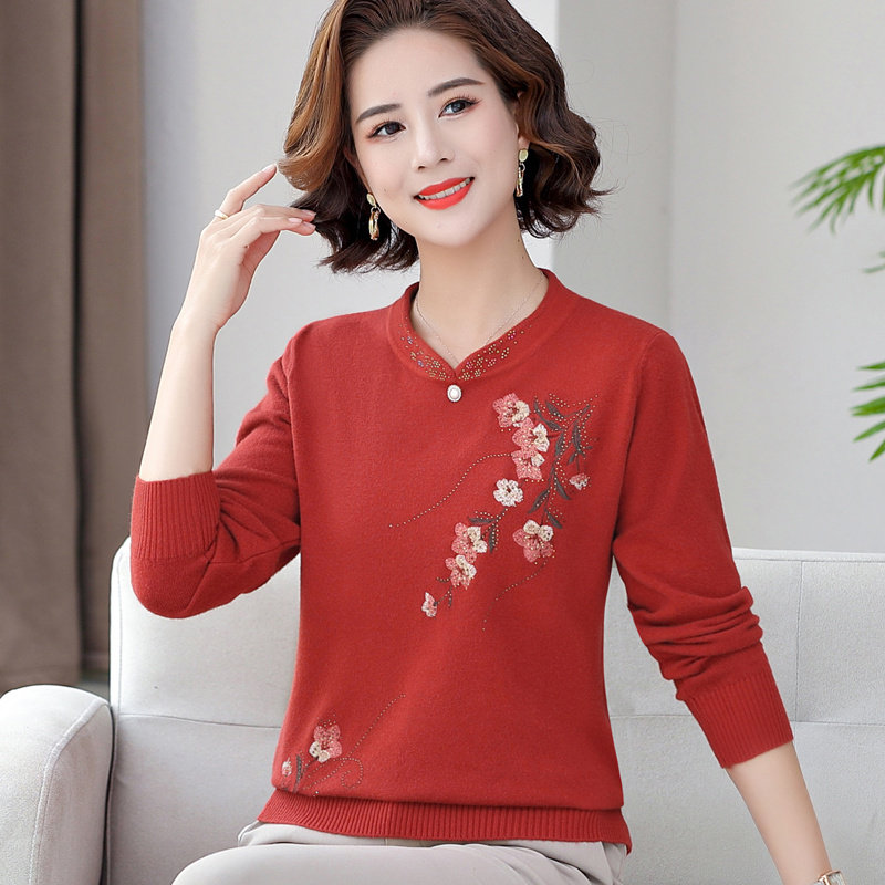 2022 Spring Dress New Moms Dress Loose Needle Weaters elderly women's dress Flag burqa collar bottom shirts wearing thin sweaters