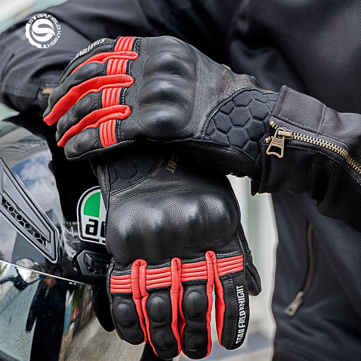Starknight Rider Locomotive Gloves Locomotive Riding Protection Mountain Goat Leather Carbon Fiber Palm Comfort Breathable Four Seasons