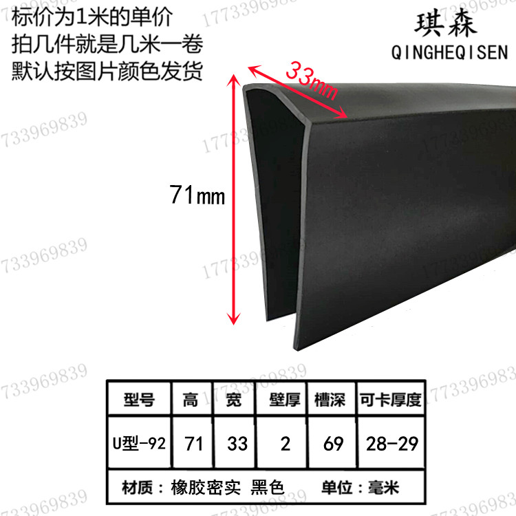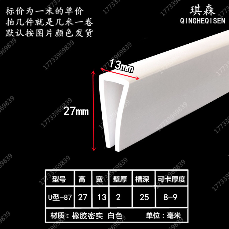 Rubber edge strip U-shaped card 3mm strip soft protection anti-collision strip card slot glass steel plate insert strip seal