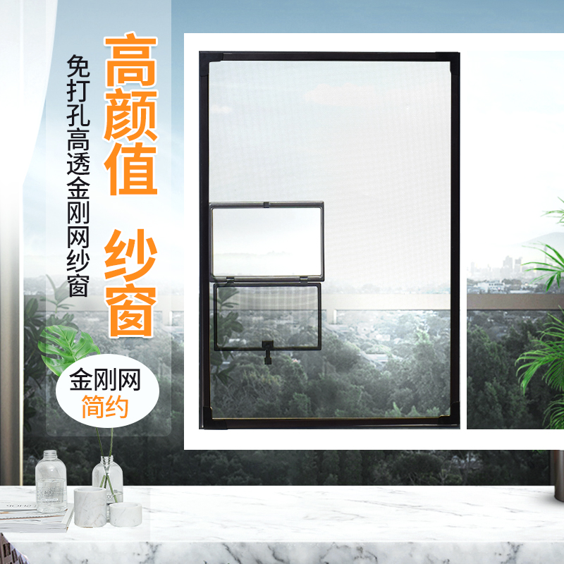 Diamond mesh screen free perforation aluminum alloy window disassembly special magnetic self-adhesive screen high permeability anti-mosquito screen window