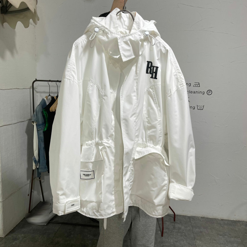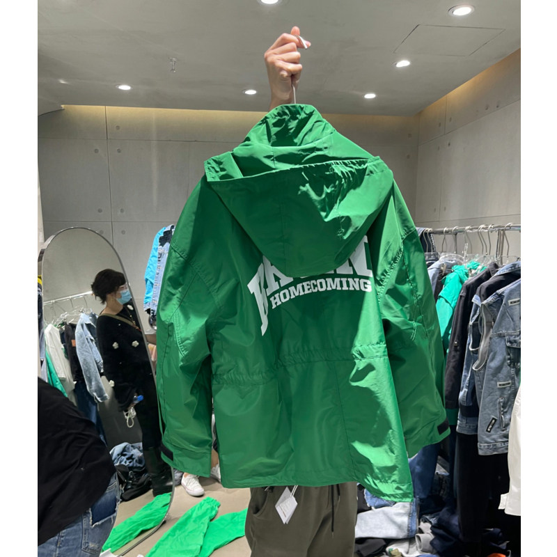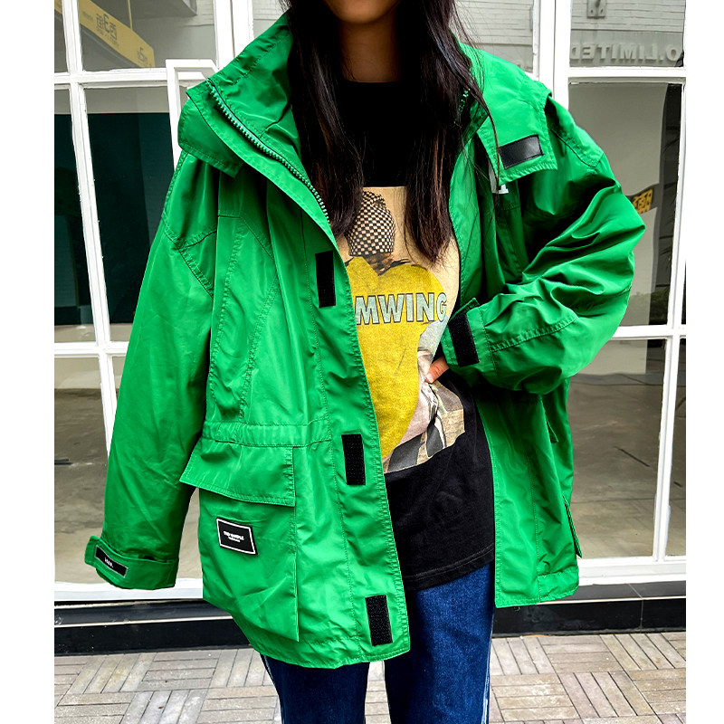 2022 Trench coat women's European station new letters loose waist thin green hooded storm jacket overalls