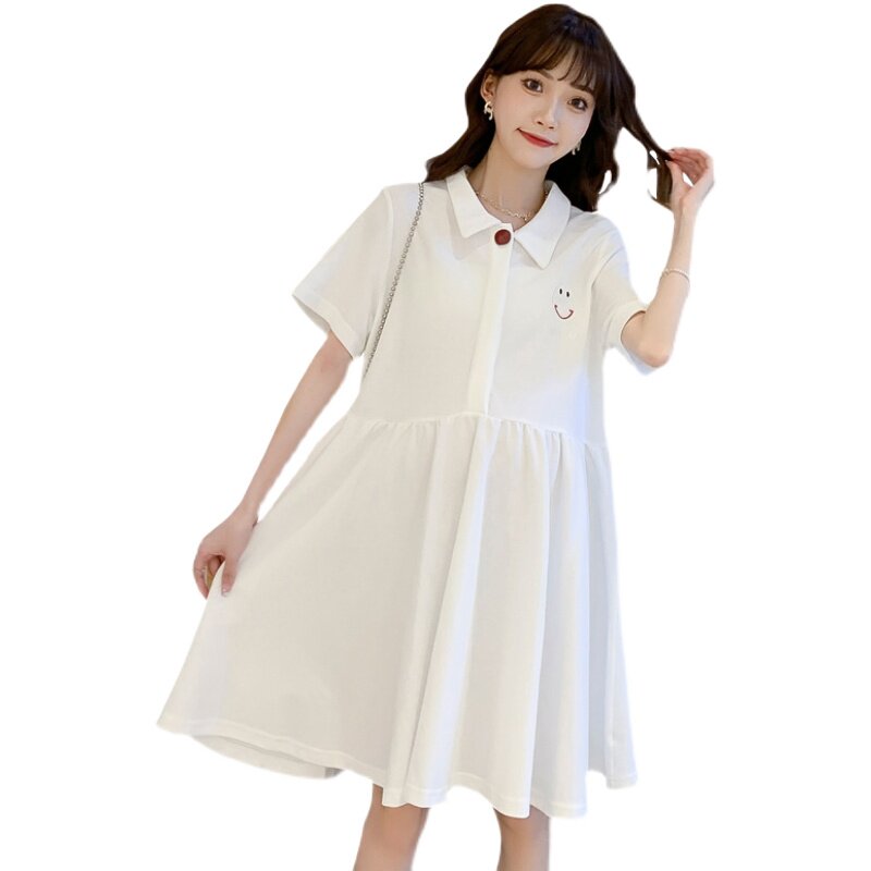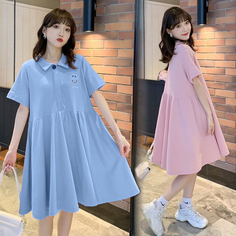 Pregnant Woman Spring Clothing Fashion Dress Fashion Splicing Medium Long Version Dresses Loose Outside Wearing Net Red Short Sleeve Summer Dress Ocean Wave