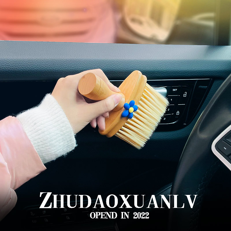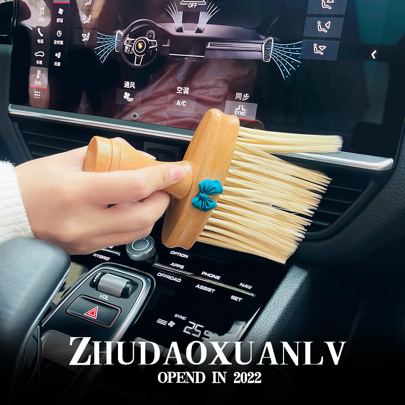 Solid Wood Car Air Outlet Dust Removal Brush Creative On-board Gap Sweep Gray Car Brushed Soft Hair Brush In-car Cleaning Tools