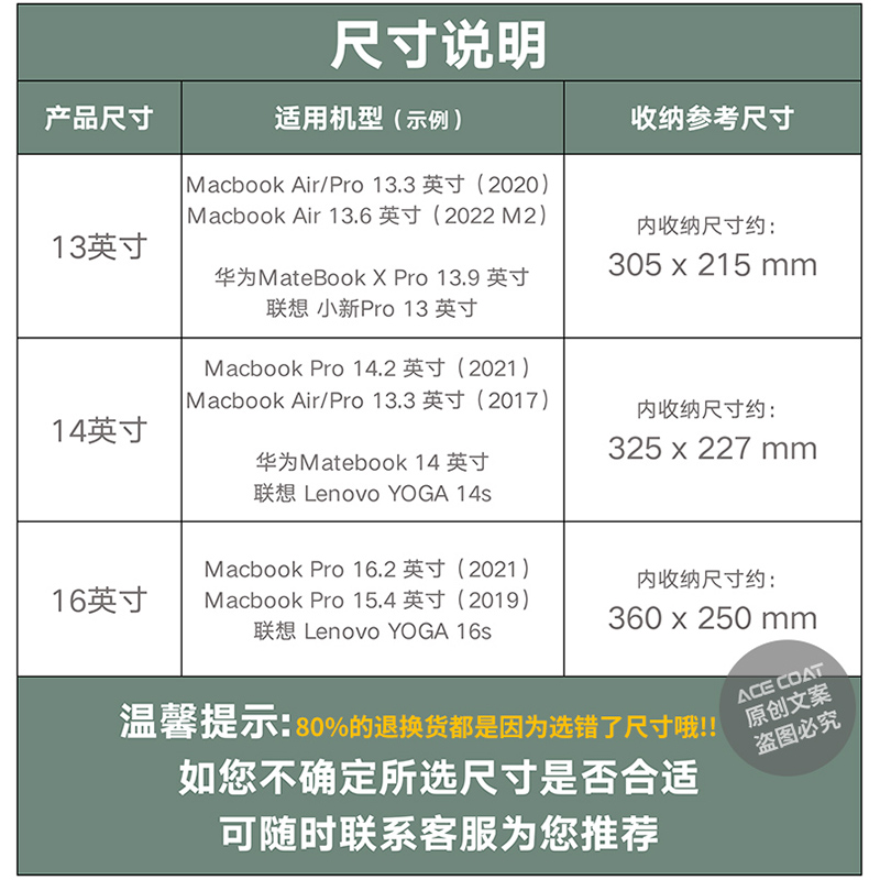 ACECOAT minimalist computer bag liner bag applicable Apple macbookpro14 inch Huawei matebook Lenovo 13 small new air notebook 15 6 bag M