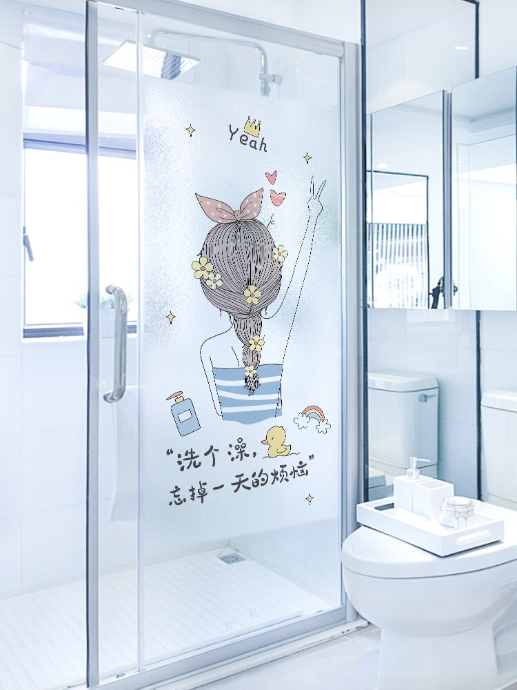 Powder room free perforation curtain waterproof bathroom toilet anti-light blackout home installation window blinding curtain roll curtain