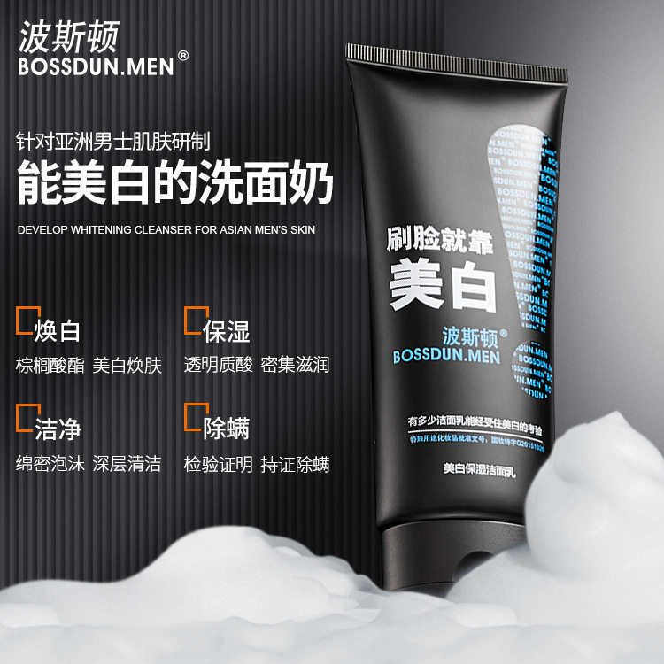 Facial cleanser for men, whitening, whitening, anti-acne, oil control, anti-mite, blackhead, moisturizing, hydrating, pores tightening