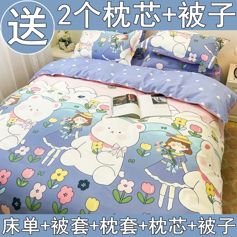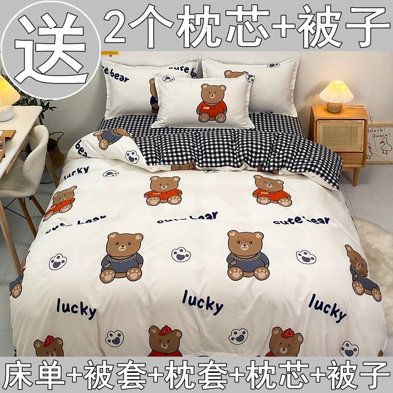 Four pieces of full cotton pure cotton 100 quilt cover Quilt Bed Bedding Linen Quilt Cover Single Student Dormitory Three Sets 4