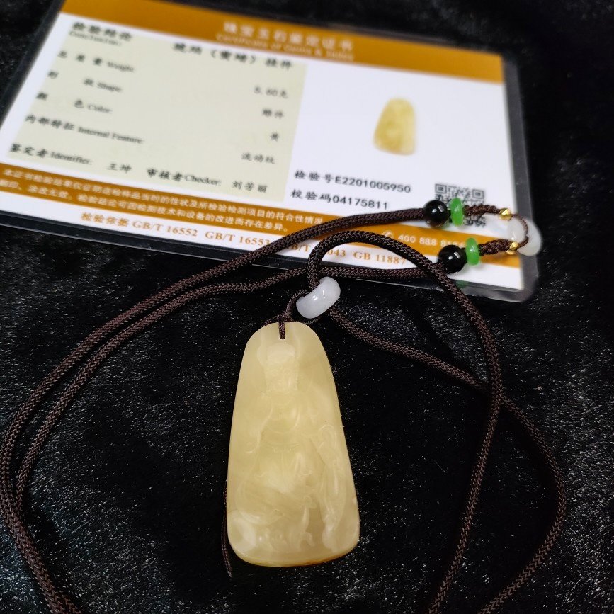 Putuo Mountain Monastery Over Incense Stove Pendant Necklace of Buddha Guanyin Bodhisattva Bodhisattva Pendant Honeywax with certificate Worthy Gift Box