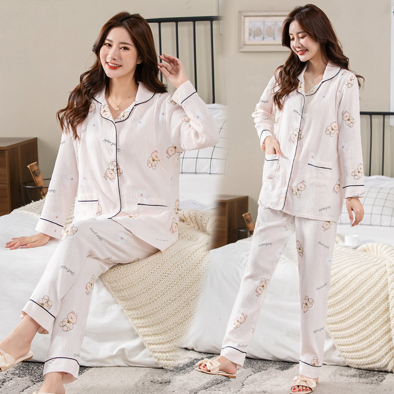 Extra fertilizer XL maternity pajamas 200 catties women's spring and autumn maternity gauze confinement clothing pure cotton summer thin section 300 catties