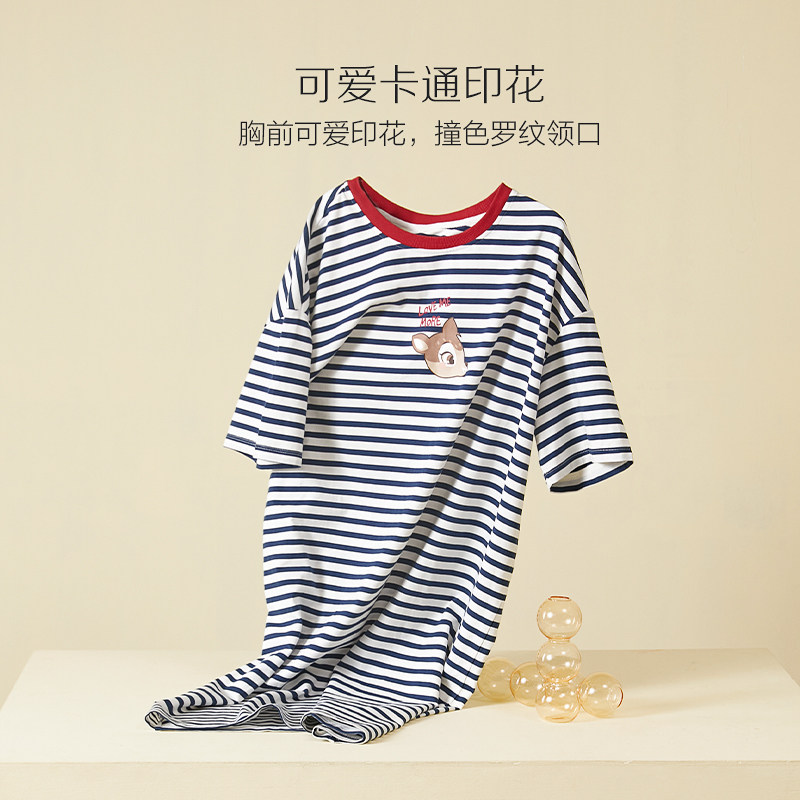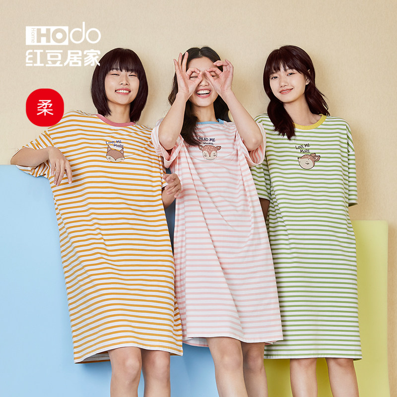 Nightdress women's summer cotton comfortable can be worn red bean home cartoon loose home clothes short-sleeved thin pajamas