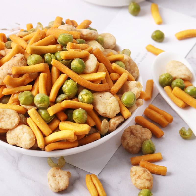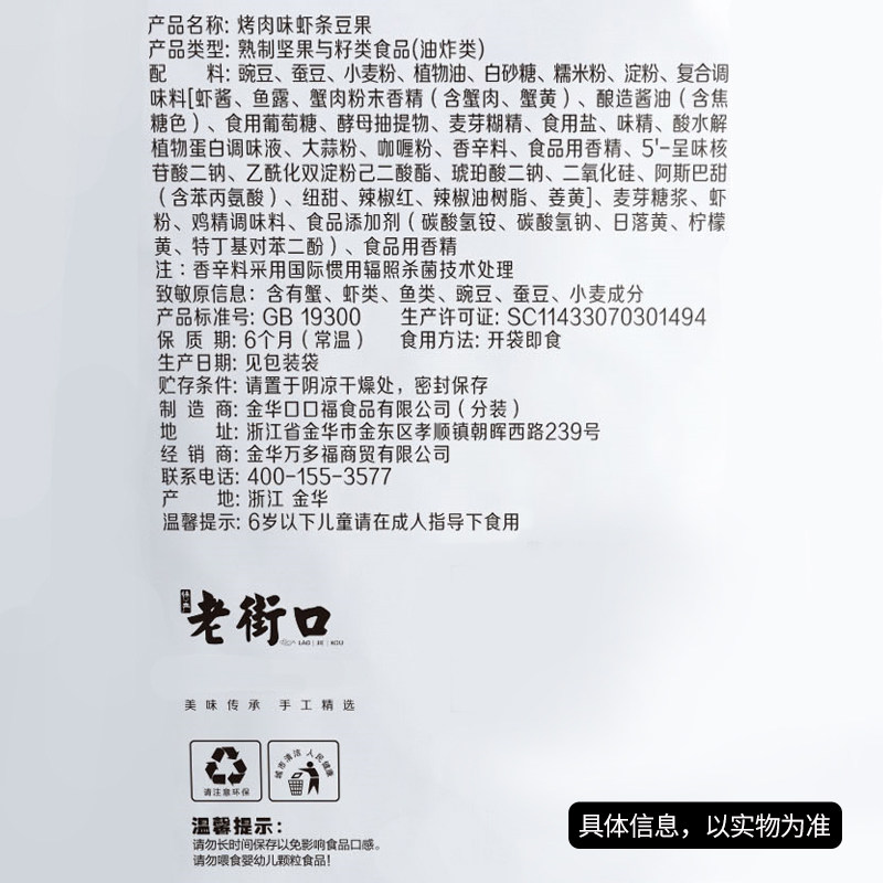 Old Streets Roast Meat Taste Shrimp Strips Bean Jam 230g nuts Stir-fried Silkworm Bean Puffed Casual Snacks Small Packaged Snack