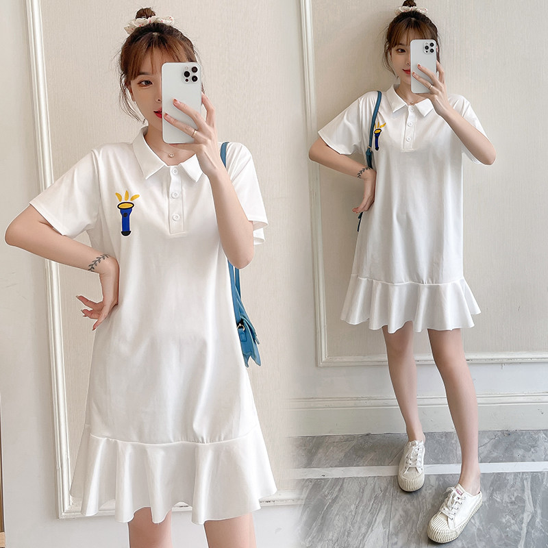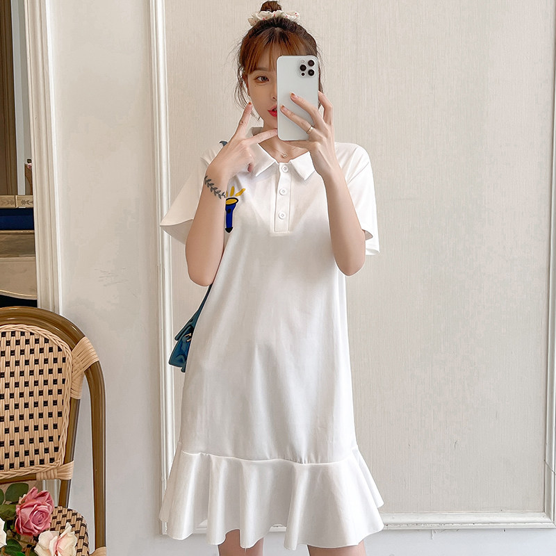 Maternity wear summer dress lapel dress fashion Korean version loose casual cotton POLO collar skirt mid-length tide