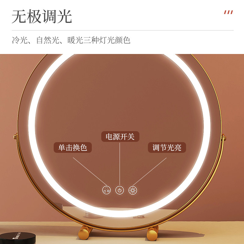 Smart Charging Mirror Makeup Mirror Desktop LED Lamp with Tonic Light Dresser dresser Desktop Beauty Ins Round Cosmetic Mirror