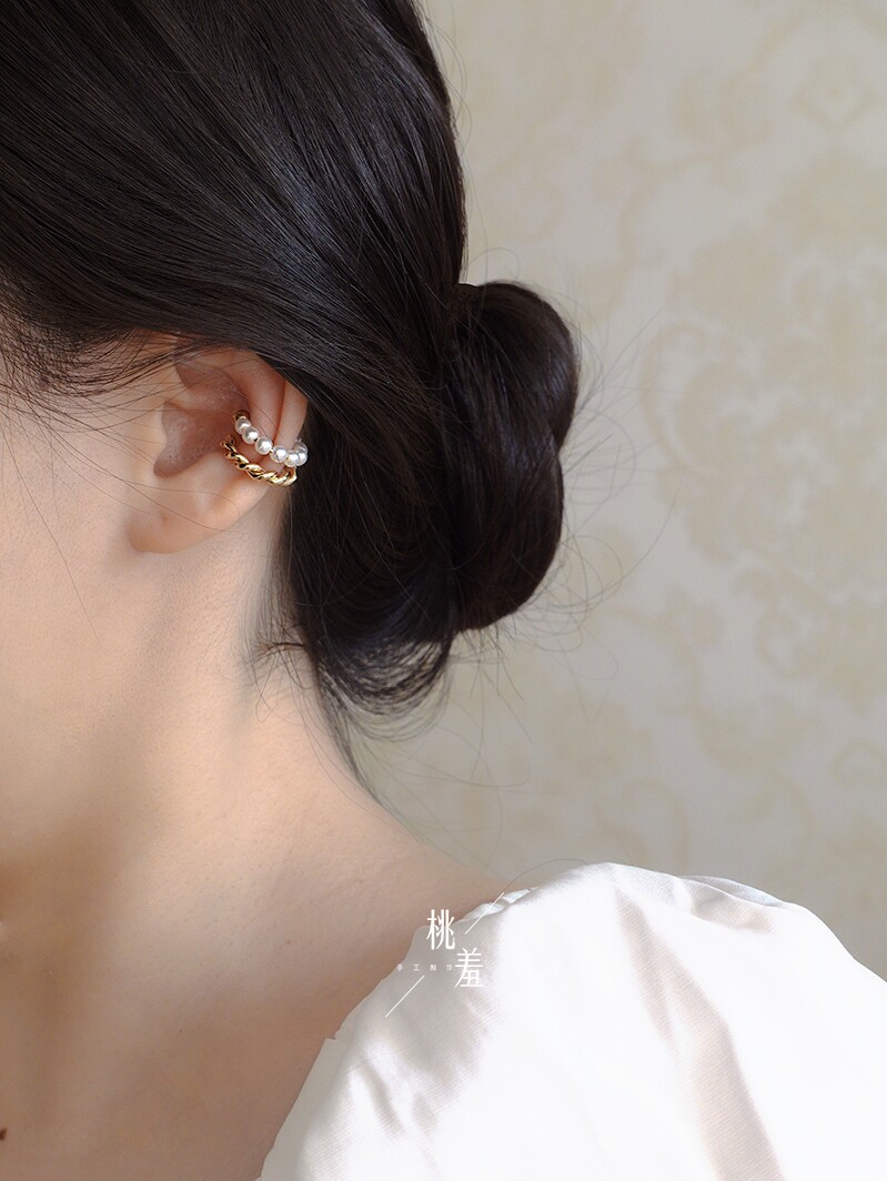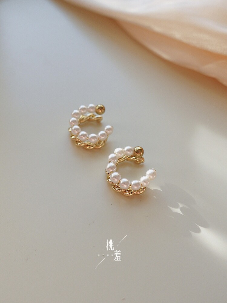 Pearl ear clip women without ear piercing ear bone clip tea earrings high-end feeling niche light luxury French retro temperament earrings