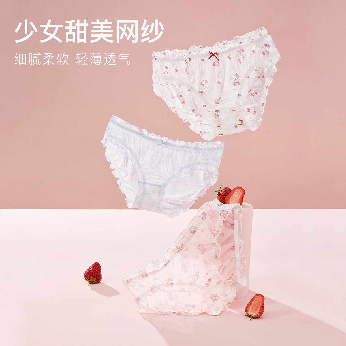 Lecho Sanligull antibacterial underwear lace mesh sexy low waist girl cute pure desire 3 pairs of triangles