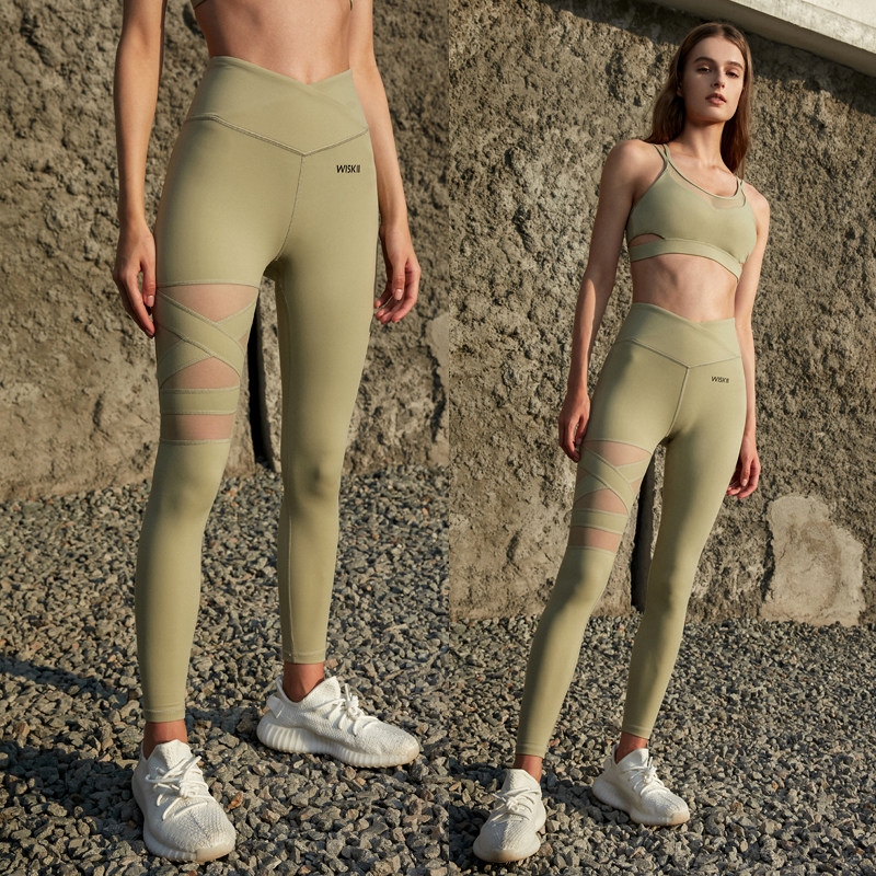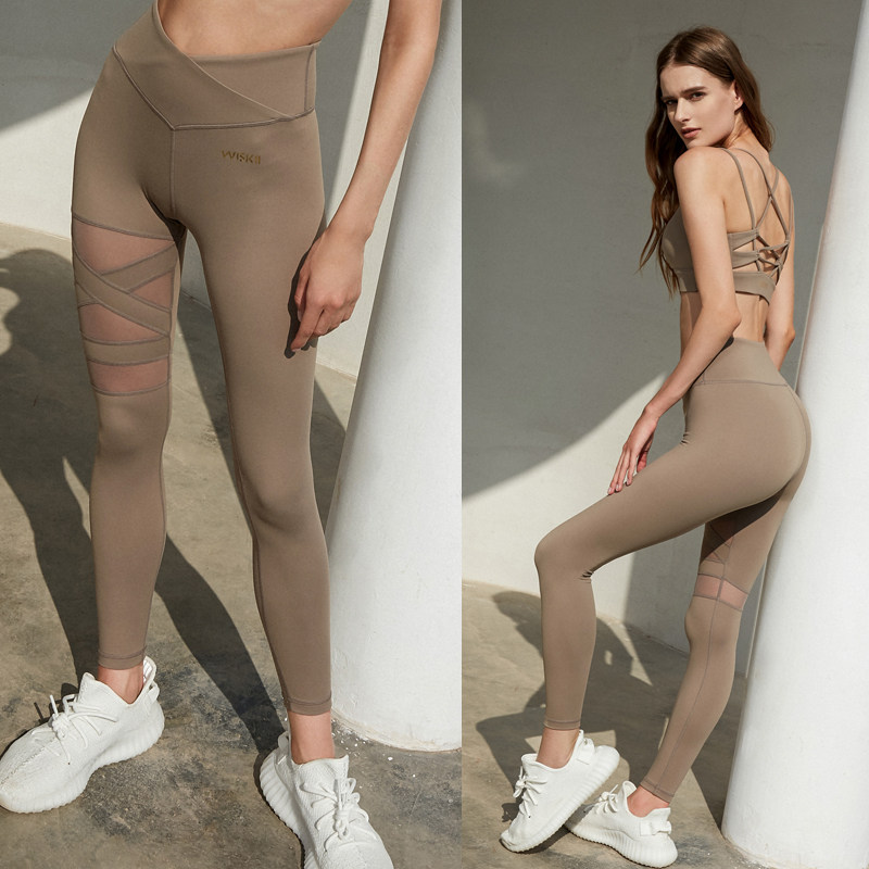 WISKII2022 New Leica Mesh Yarn Splicing Nude Sensation Yoga Pants Fitness Pants Women Sports Running Long Pants High Bomb