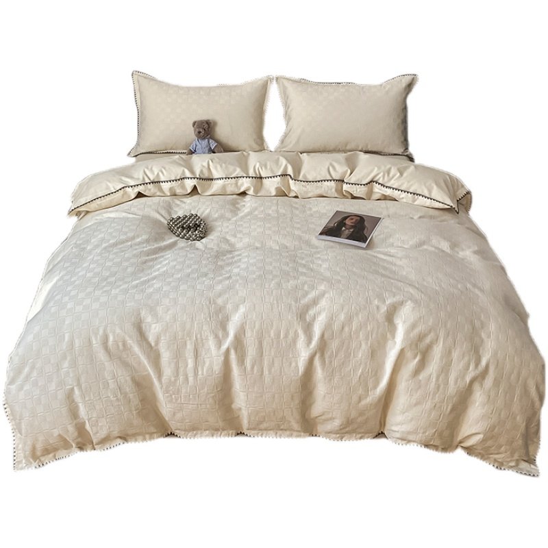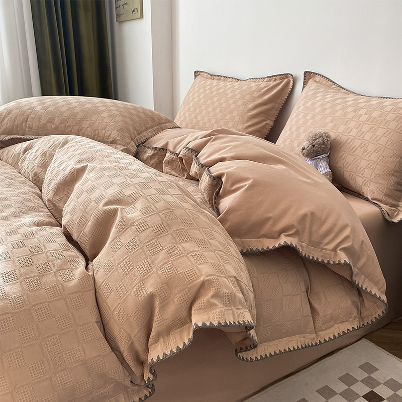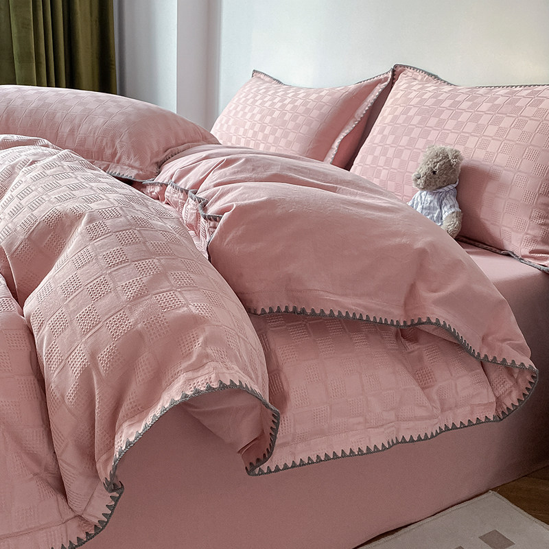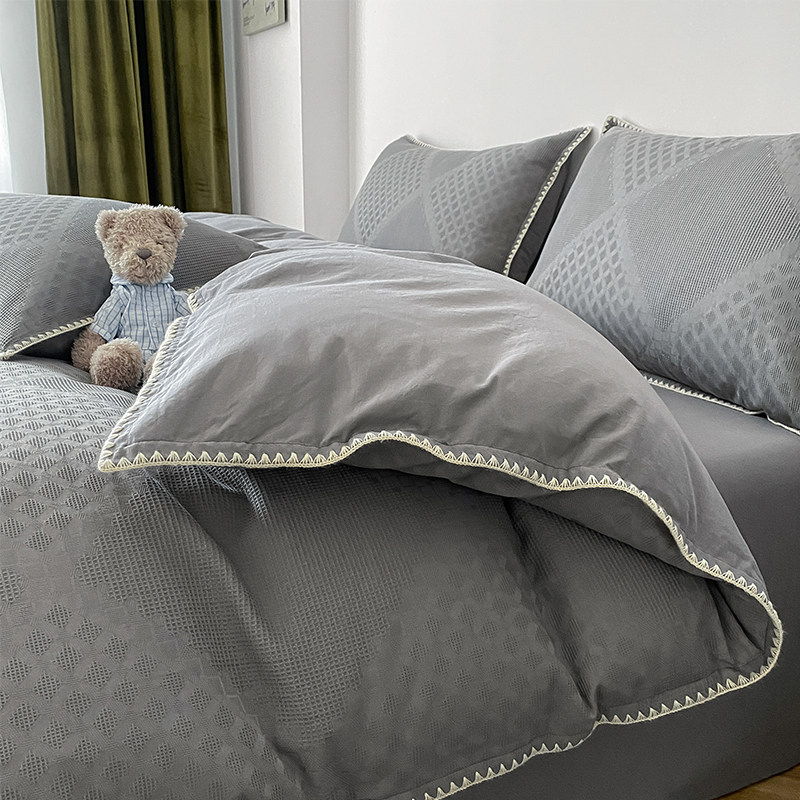 Class A pro-skin pure cotton washed cotton Huffag four sets of sets with wind pure color simple triangular needle quilt cover full cotton bed