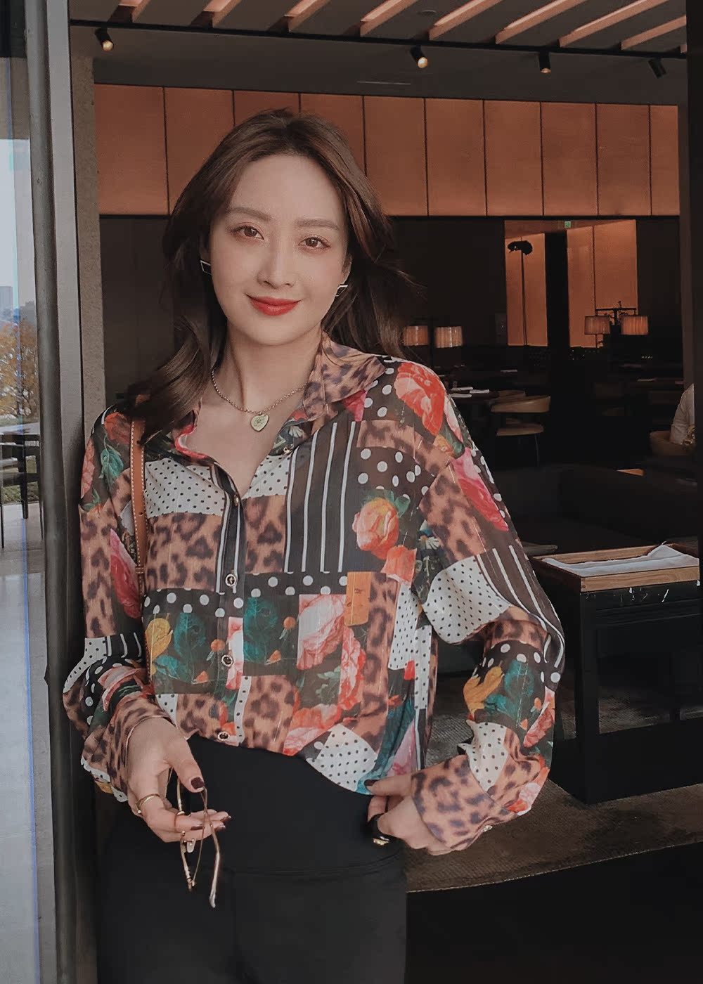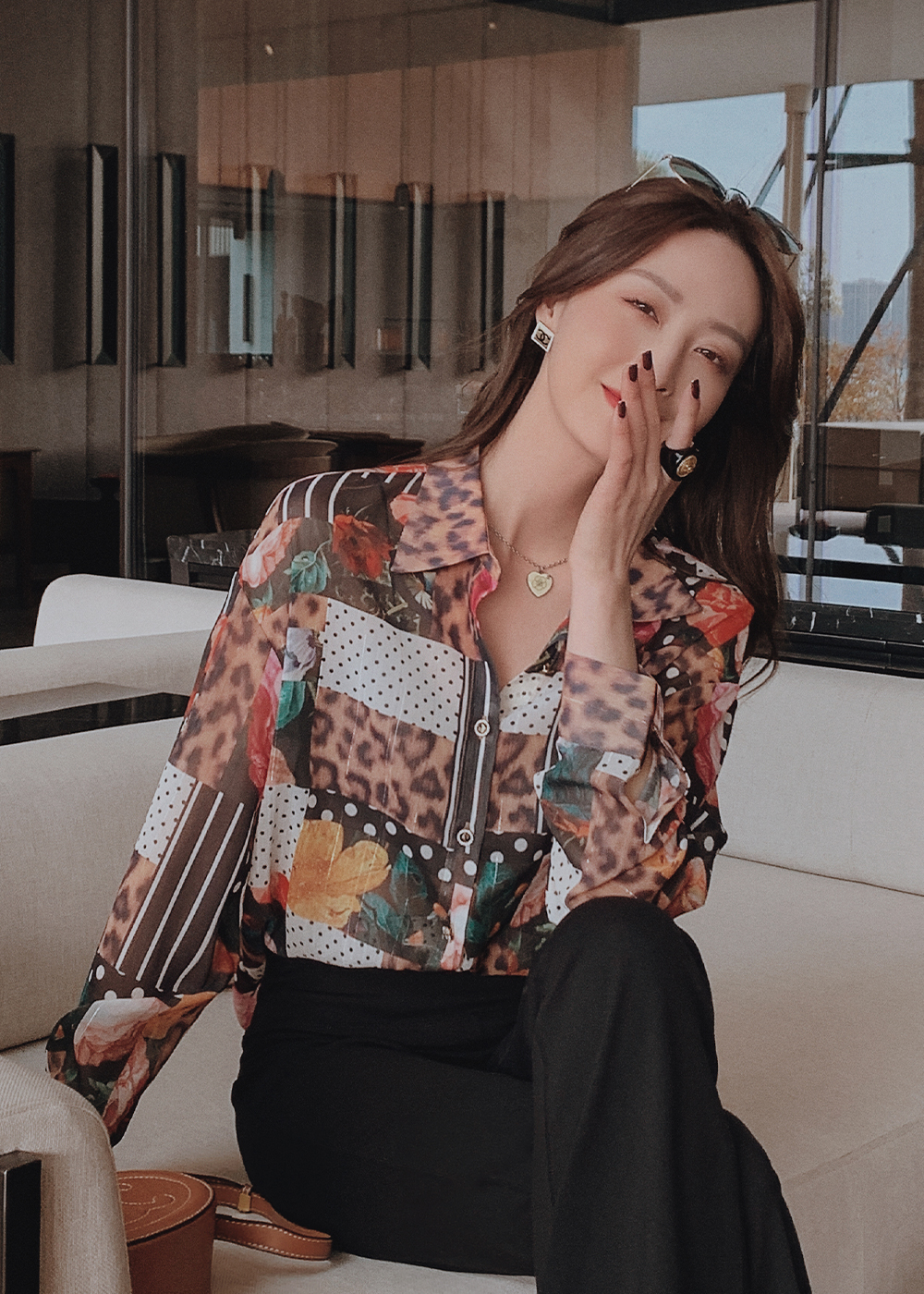 Gale High Dingding LRKS (BAO WEN rose) silver silk double crepe printed vinogue fashion shirt L92CSO065