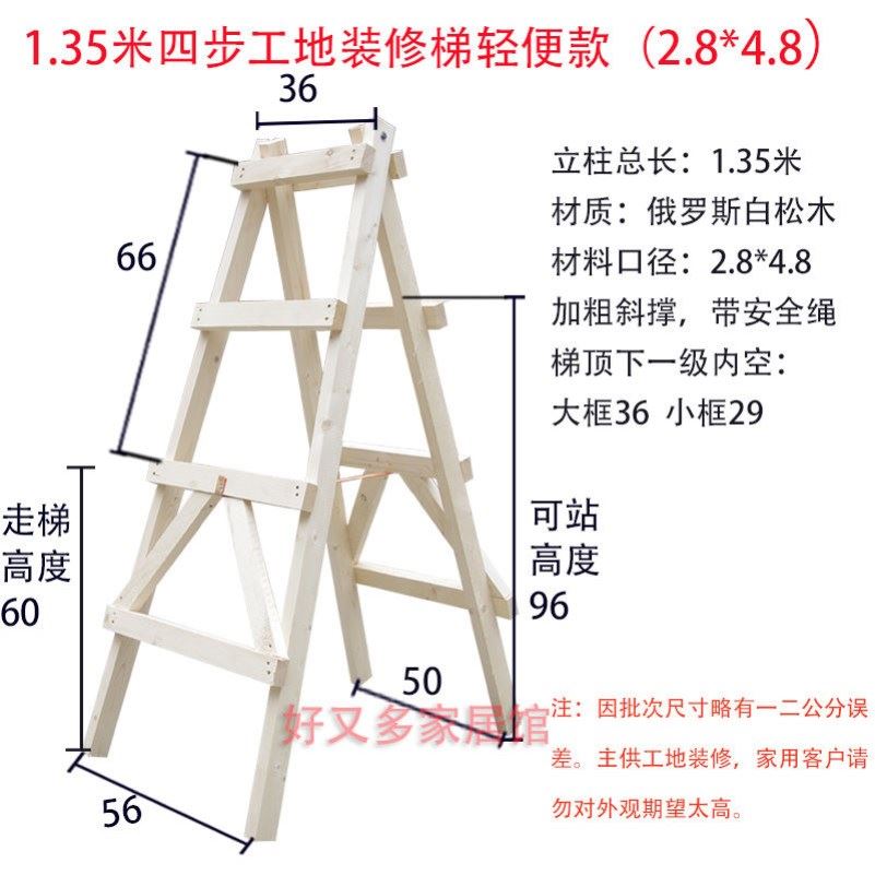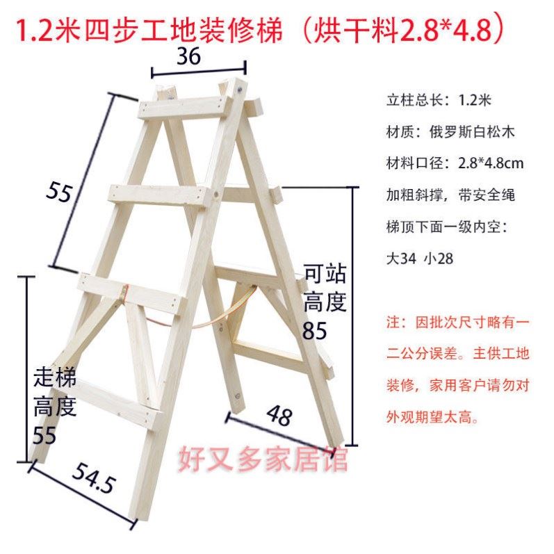 Electrician wooden ladder lightweight white pine herringbone ladder decoration site walking ladder water and electricity installation suspended ceiling stairs