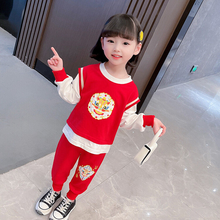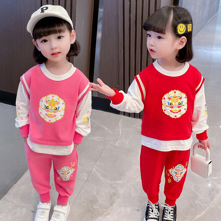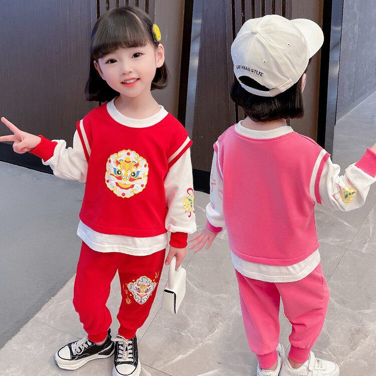 Girl Suit Spring Dress Foreign Pie 2022 New Korean Version Children Casual Thick Cotton Polo Baby Sports Two Suits