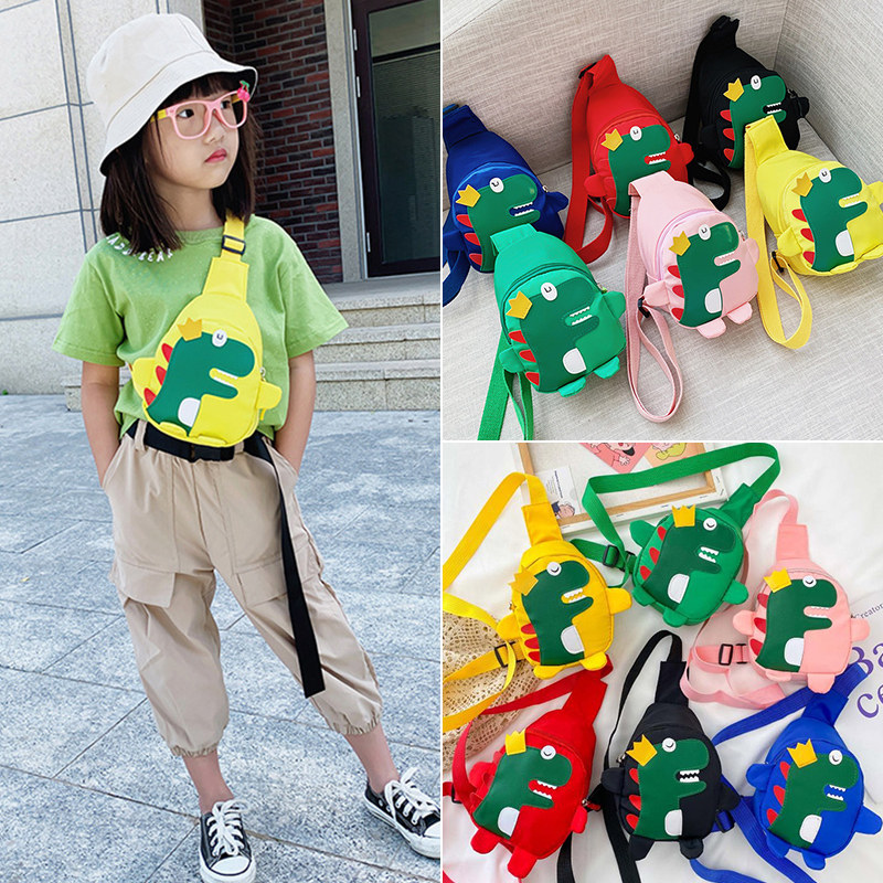 New Cartoon Children Bag Casual Chest Bag Dinosaur Bag 100 Lapped Canvas Slanted Satchel Kindergarten SHOULDER BAG SMALL GIFT