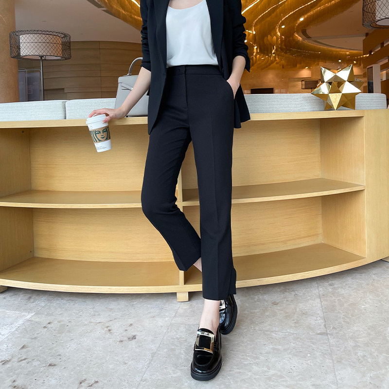 Shoe Magic Founder (pants feet irregular design high waist display slim 90% pants Western pants straight tube long pants woman)